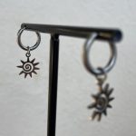 Pendientes (2 unidades) de aro pequeños en acero dorado, hipoalergénicos y ligeros, con un delicado troquelado en forma de sol. Un detalle sutil y luminoso que aporta calidez y estilo a tu día a día, perfectos para llevar siempre sin renunciar a la comodidad.