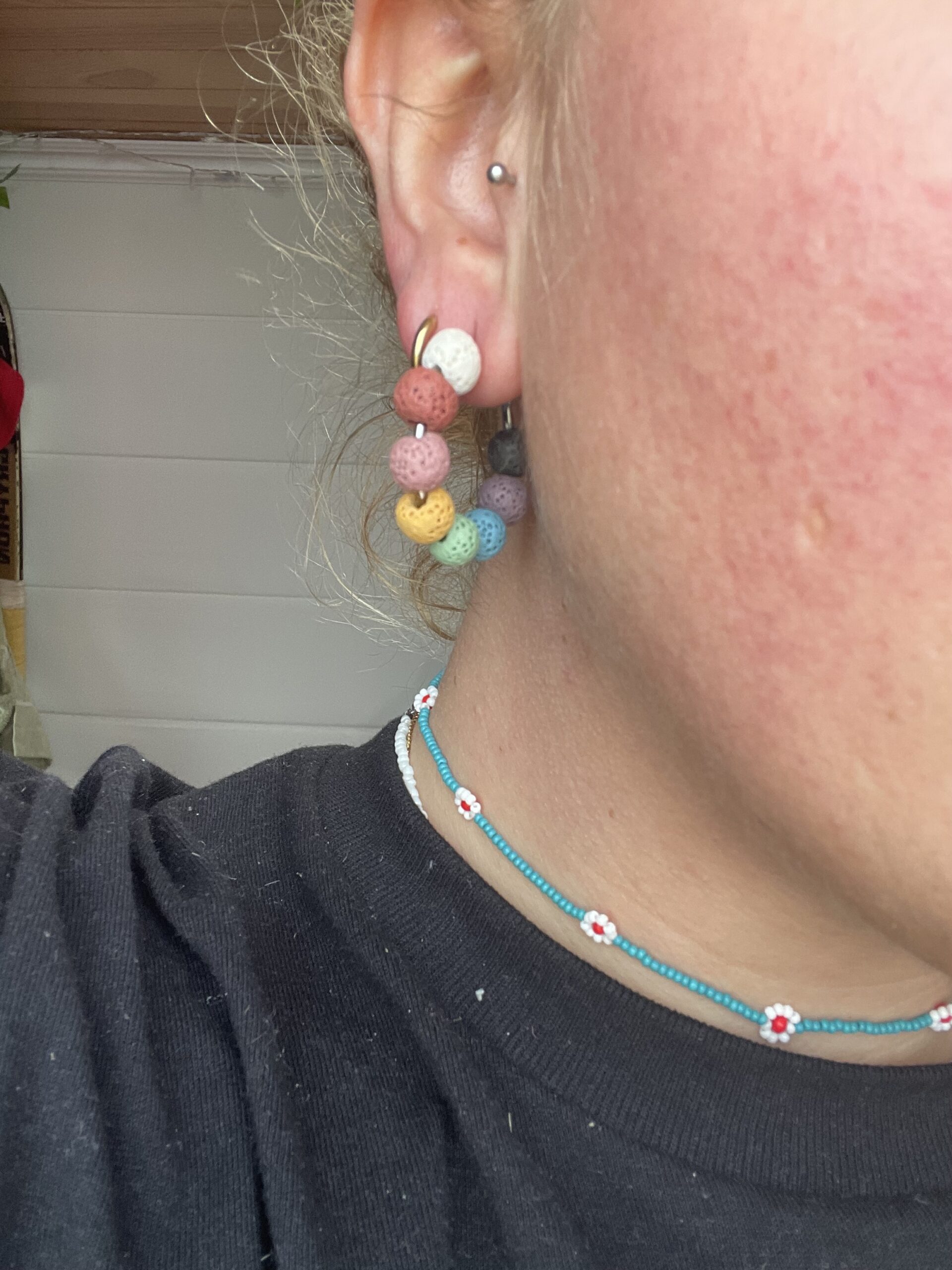 Aros ligeros y vibrantes con piedra volcánica en colores alegres: rosa, amarillo, azul claro y más. Ideales para dar un toque fresco, divertido y natural a tus días de sol.